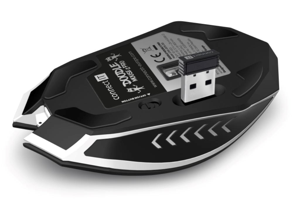 Precizní optický senzor má nastavitelnou citlivost až na 4800 DPI. Vysokou odolnost garantují špičkové mechanické spínače HUANO s životností 20 miliony kliknutí. Myš využívá technologii AutoPowerSave šetřící kapacitu baterie. Dodávaný SW s četnými nastaveními podporuje uživatelská makra, 5 uživatelských profilů a 6 programovatelných tlačítek včetně posuvného kolečka. Software je zdarma ke stažení na stránkách www.connectit-europe.com. Samozřejmostí je pozlacený USB Nano přijímač a dodávaný nabíjecí kabel.