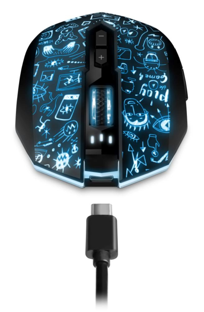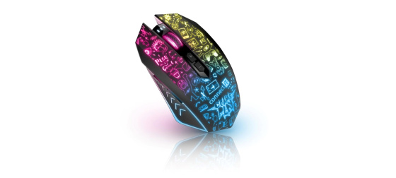 Profesionální bezdrátová gamingová myš DOODLE 2 PRO pro hráče počítačových her s Rainbow podsvícením těla i kolečka.