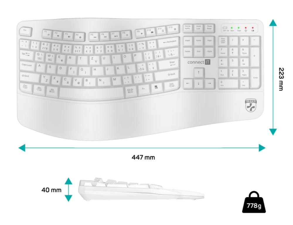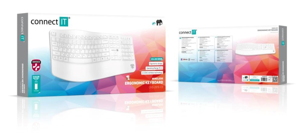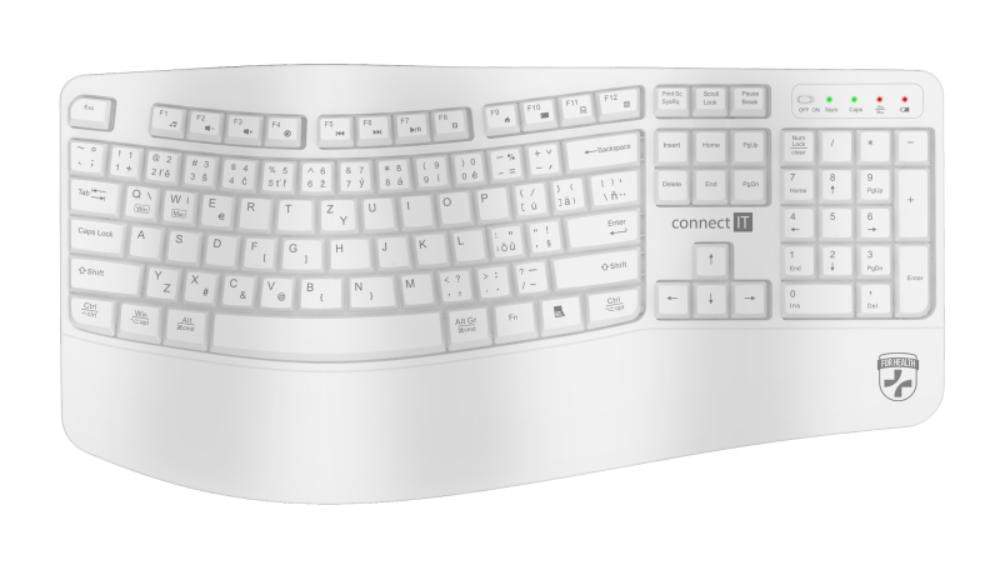 Popis CONNECT IT FOR HEALTH Ergonomická klávesnice ErgoOffice, Bezdrátová, CZ+SK, bílá