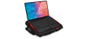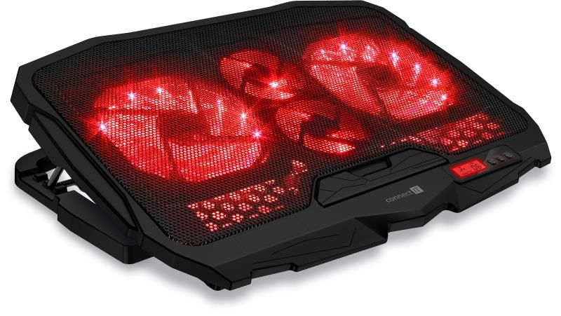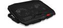 Chladicí podložka pod notebook se čtyřmi šestirychlostními ventilátory, digitálním displejem, výškovým polohováním ve 4 úrovních a dvěma USB porty. Podložka zajišťuje jak odvod tepla z notebooku a jeho ventilačních otvorů, tak i přímé ochlazování pláště notebooku díky cirkulaci chladného vzduchu a celkově tak zvyšuje výkon notebooku. Je plně kompatibilní s notebooky až do velikosti 15,6" a díky kompaktním rozměrům je předurčena jak pro práci doma a v kanceláři, tak i pro cestování a časté přenášení. Ultratichý chod 4 ventilátorů vás nebude rušit ani při nejnáročnější práci vyžadující maximální soustředění. Výšková polohovatelnost ve 4 různých stupních vám zajišťuje maximální pohodlí i při delších pracovních či herních sezeních.