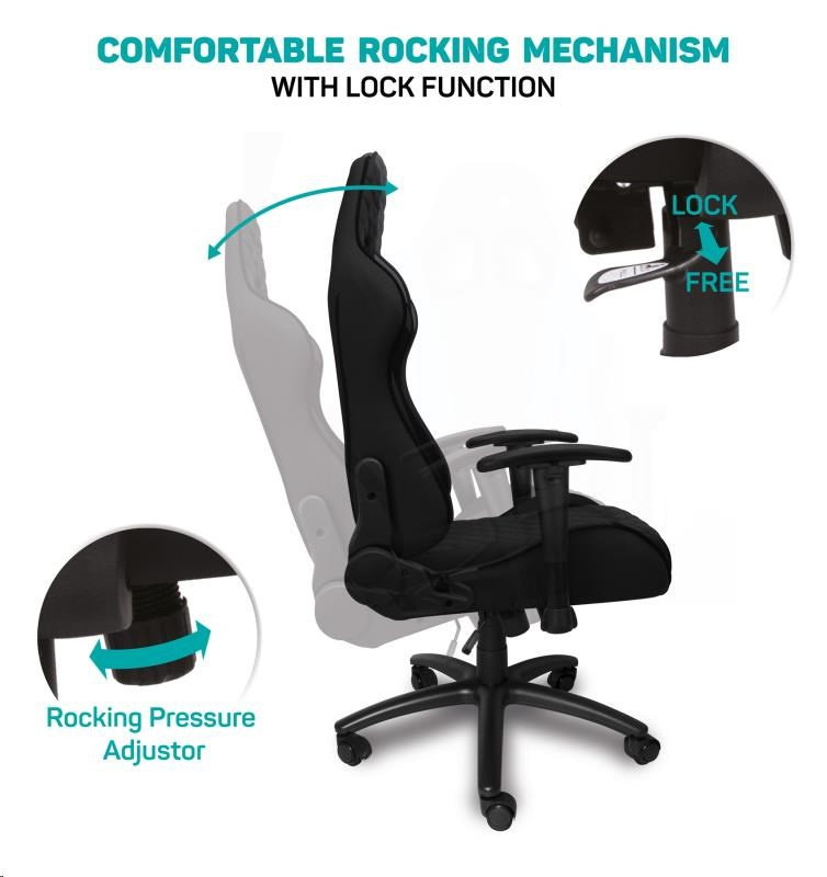 Vyniká luxusním zpracováním, moderním ergonomickým designem a velmi stabilní konstrukcí. Mnohačetná nastavení vyhoví každé postavě. Design byl speciálně navržen pro dlouhodobé sezení a umožňuje i běžnou práci doma i v kanceláři. Ideální pro mnohahodinové hraní bez kompromisů.