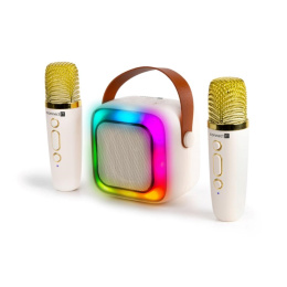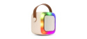 Přední panel disponuje barevným LED podsvícením s možností přepínání několika světelných módů a v horní části reproduktoru se nachází všechna potřebná ovládací tlačítka. Díky dvěma mikrofonům s několika zvukovými efekty si užijte spousty zábavy s přáteli. Baterie s kapacitou 1200 mAh zabezpečí až 6 hodiny přehrávání a lze ji nabíjet pomocí dodávaného USB-C kabelu z jakékoliv USB nabíječky nebo power banky.