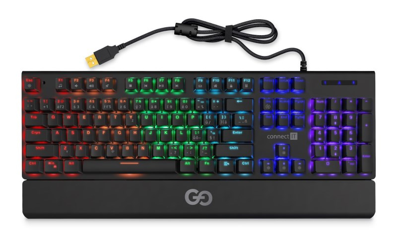 Profesionální mechanická klávesnice GG series pro hráče počítačových her v českém a slovenském layoutu s celkem 9 módy barevného rainbow podsvícení a pětistupňovou regulací intenzity podsvícení. K dispozici je 12 multimediálních kláves.