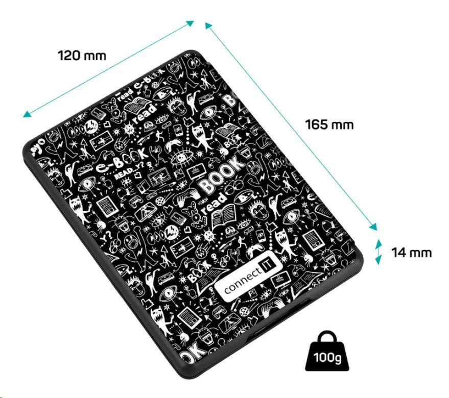 Přední kryt otočný o 360° umožňuje pohodlné čtení v jedné ruce (stačí otevřít a překlopit)