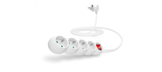 Prodlužovací kabelový přívod na 230V je vybaven hlavním síťovým vypínačem, který při vypnutí zcela odpojí od přívodu elektrické energie všechny zapojené spotřebiče najednou. Extra výbavou je dětská ochrana všech zásuvek – zásuvky jsou přístupné pouze v případě zasunutí obou vidlic najednou, nelze tedy zasunout jednotlivě např. pouze šroubovák nebo pletací jehlici.