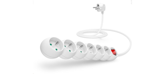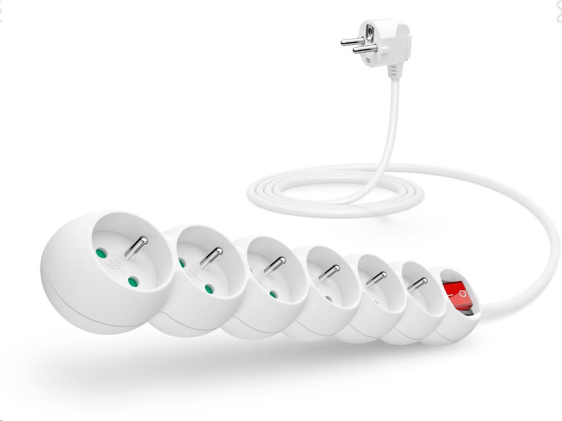 Prodlužovací kabelový přívod na 230V je vybaven hlavním síťovým vypínačem, který při vypnutí zcela odpojí od přívodu elektrické energie všechny zapojené spotřebiče najednou. Extra výbavou je dětská ochrana všech zásuvek – zásuvky jsou přístupné pouze v případě zasunutí obou vidlic najednou, nelze tedy zasunout jednotlivě např. pouze šroubovák nebo pletací jehlici.