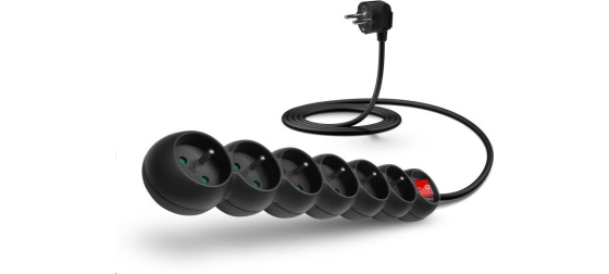 Prodlužovací kabelový přívod na 230V je vybaven hlavním síťovým vypínačem, který při vypnutí zcela odpojí od přívodu elektrické energie všechny zapojené spotřebiče najednou. Extra výbavou je dětská ochrana všech zásuvek – zásuvky jsou přístupné pouze v případě zasunutí obou vidlic najednou, nelze tedy zasunout jednotlivě např. pouze šroubovák nebo pletací jehlici. Díky pootočení zásuvek o 45° je možné používat i objemnější napájecí adaptéry nebo úhlové koncovky. Výsuvné očko v horní části zásuvkového modulu umožňuje zavěšení nebo pevnou instalaci na stěnu (s výhodou využijete např. v dílnách a garážích). Výrobek byl testován a certifikován v evropském testovacím centru a splňuje nejpřísnější bezpečnostní požadavky a nejnovější normy, takže umožňuje zapojení spotřebičů o celkovém příkonu až 2500 W.