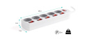 Prodlužovací kabelový přívod na 230 V je vybaven hlavním síťovým vypínačem, který při vypnutí zcela odpojí od přívodu elektrické energie všechny zapojené spotřebiče najednou. Prodlužovací kabel také disponuje s vypínači pro každou zásuvku zvlášť, sami si zvolíte, které zásuvky budou kdy zapnuty nebo vypnuty bez potřeby odpojování připojovacího kabelu od elektrospotřebiče. Extra výbavou je dětská ochrana všech zásuvek – zásuvky jsou přístupné pouze v případě zasunutí obou vidlic najednou, nelze tedy zasunout jednotlivě např. pouze šroubovák nebo pletací jehlici. Díky pootočení zásuvek o 45° je možné používat i objemnější napájecí adaptéry nebo úhlové koncovky.