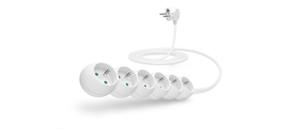 Prodlužovací kabelový přívod na 230V je vybaven dětskou ochranou všech zásuvek – zásuvky jsou přístupné pouze v případě zasunutí obou vidlic najednou, nelze tedy zasunout jednotlivě např. pouze šroubovák nebo pletací jehlici.