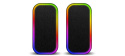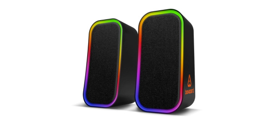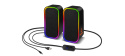 Reproduktory jsou vybaveny RGB Rainbow podsvícením a ovládáním hlasitosti/podsvícení/vstupu na kabelu.