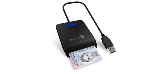 Externí čtečka eObčanek a čipových karet s rozhraním USB-A.