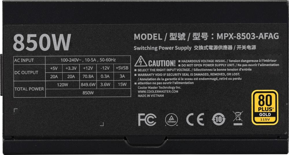 MWE Gold V3 přináší do řady napájecích zdrojů Cooler Master nový standard odolnosti a účinnosti. Tato jednotka s certifikací 80 Plus Gold dosahuje při nízkém zatížení v testu 115 V účinnosti na úrovni Titanium.