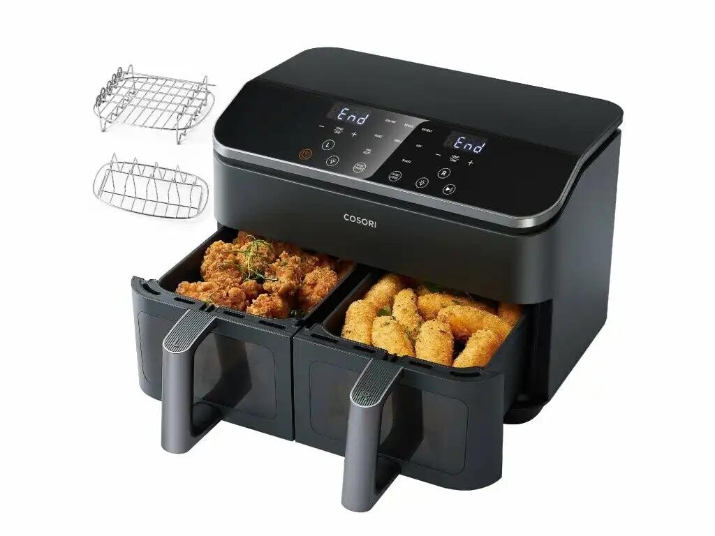 Cosori CAF-R901-AEU Dual Basket je ideální volbou pro ty, kteří hledají multifunkční horkovzdušnou fritézu s možností současné přípravy různých pokrmů. Díky širokému teplotnímu rozsahu, přednastaveným programům a praktickým funkcím jako Sync Cook a Sync Finish nabízí pohodlné a zdravé vaření pro celou rodinu.