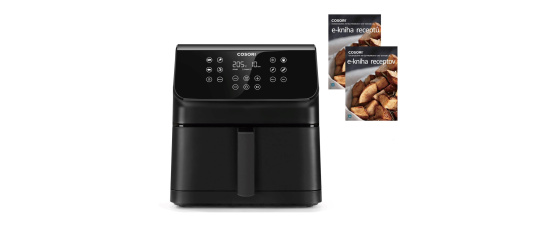Představujeme horkovzdušnou fritézu Cosori Premium II. Inovované řešení, které nejen šetří čas, ale také energii a nabízí způsob vaření, který je šetrný ke zdraví. S horkovzdušnou fritézou si můžete užívat oblíbená jídla připravovaná s minimem oleje, vyhnete se zápachu ze smažení a také úklid je díky možnosti mýt koš v myčce hračkou. Fritéza nabídne koš se štědrým objemem 6,2 litrů, takže v ní je možné pohodlně připravit jídlo pro 3-5 lidí, například celé, 2,3 kg kuře. Při vysoké objemu si ale zachová malé vnější rozměry, takže se hodí i do malých kuchyní. S technologií 360° cirkulujícího vzduchu se fritéza zahřeje na provozní teplotu do 5 minut a dále výrazně zkracuje dobu vaření. Malý objem také znamená malou spotřebu energie ve srovnání s běžnou troubou. Fritéza nabídne 12 programů pro přípravu pokrmů, které je možné upravit podle individuálních chutí. Displej fritézy je přehledný a pohodlně nakloněný pro perfektní čitelnost. V dnešní digitální době je také poměrně atraktivní funkce vypnutí zvuku tlačítek. Jako bonus si můžete stáhnout e-kuchařku s 80 recepty v češtině i slovenštině.