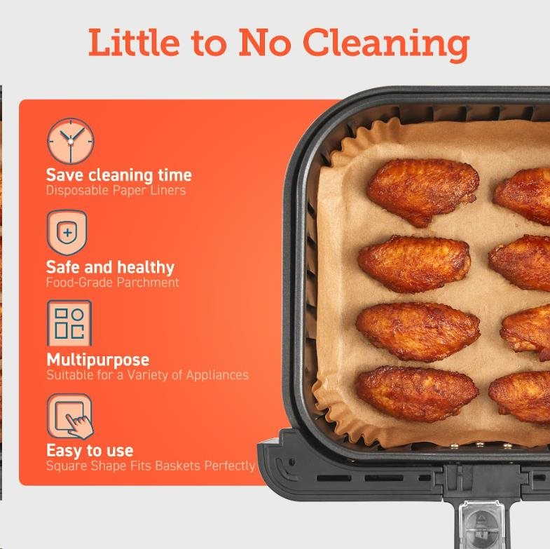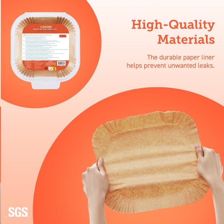 Papírové formy Cosori CLR-R601-NEU jsou navrženy pro pohodlné a hygienické vaření v horkovzdušných fritézách. Díky olejovanému a voděodolnému povrchu chrání koš fritézy před zbytky jídla, olejovými skvrnami a škrábanci, čímž prodlužují jeho životnost. Nepřilnavý povrch umožňuje rychlé a snadné čištění.