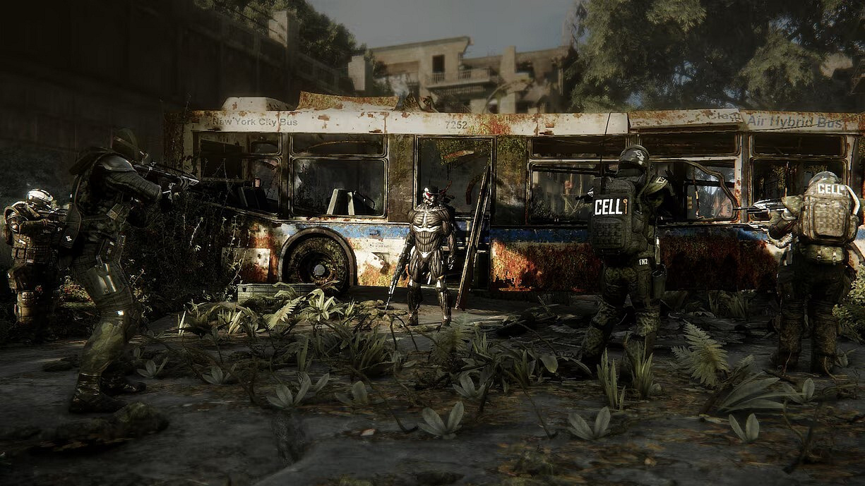 - Futuristické prostředí: New York zarostlý džunglí pod nanodómem