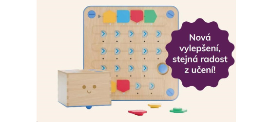 Dobíjecí baterie zároveň zvy šují udržitelnost a usnadňují pravidelné používání ve třídě i doma. Vylepšený model nabízí plynulejší učení, delší herní aktivity a více prostoru pro vlastní nápady. Děti se tak mohou přirozeně seznamovat se základy logiky a algoritmického myšlení. Cubetto+ si zároveň za chovává stejný hravý přístup k učení, díky kterému se Cubetto stalo oblíbenou pomůckou ve školkách i školách po celém světě.