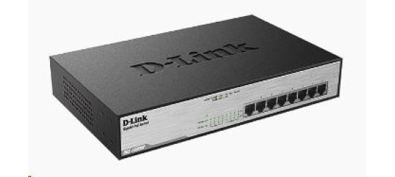 8-Port Desktop Gigabit PoE+ Switch - 8-Port 10/100/1000 Gigabit Ethernet Ports - 8 x PoE Ports - PoE output up to 30 watts per port - IEEE 802.3x flow control - Auto Half-/Full-Duplex Mode - Max power budget 140 watts - Auto MDI/MDI-X crossover for all ports - 11-inch Desktop/Rackmount Size, 1U height - Rack Mountable - D-Link Green Technology - Store-and-forward switching scheme - RoHS compliant. D-Link Corporation, No. 289, Sin Sin Road, Jhonghe City, Taipei County 235, Taiwan (R.O.C.), Podpora: https://www.dlink.com/cz/cs/support