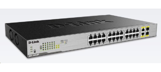 D-Link DGS-1026MP 26-Port Gigabit PoE Switch, 24x gigabit PoE RJ45, 2x gigabit RJ45/SFP, PoE budget 370W