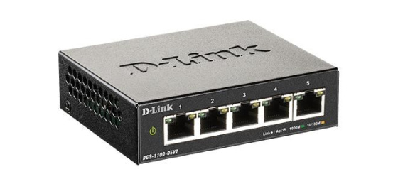 Popis D-Link DGS-1100-05V2 5-port Gigabit Smart Managed switch, fanless
