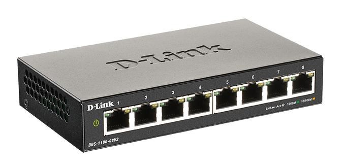 Popis D-Link DGS-1100-08V2 8-port Gigabit Smart Managed switch, fanless