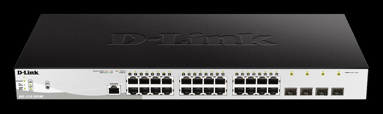 Popis D-Link DGS-1210-28P/ME/E 24-Port 10/100/1000BASE-T PoE + 4-Port 1 Gbps SFP Metro Ethernet