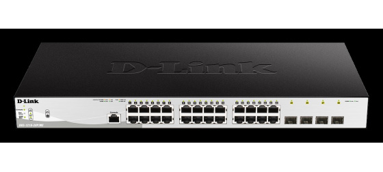 "24-Port 10/100/1000BASE-T PoE + 4-Port 1 Gbps SFP Ports Metro Ethernet Switch - 24 x 10/100/1000BASE-T PoE ports - 4 x 1 Gbps SFP ports - Switching Capacity 56 Gbps - PoE Capable Ports 1-24 - PoE Power Budget 193W - Layer 3 Features: H/W Ver. B1 IPv4/IPv6 Interface (Max. 4 IPv4/IPv6 Interfaces), Static Route, Max. 128 ARP Entries, Supports 255 static ARP entries - Layer 2 Features: Supports IEEE 802.3ad Link Aggregation (Supports max. 8 groups, 8 ports per group), Port-based Q-in-Q, Lookback detection, Spanning Tree Protocols: 802.1D STP, 802.1w RSTP, 802.1s MSTP, 16K MAC address table and Jumbo Frame up to 9,216 Bytes - Quality of Service (QoS) – Bandwidth Control, Queue handling, 8 outbound queues - Management: Web-based GUI (IPv4/IPv6), Full Command Line Interface (CLI) through Telnet, SSH and the console port, D-Link Network Assistant Utility (DNA) - Access Control Lists (ACLs) Security: SSH, Port security (up to 64 MAC addresses per port), IP-MAC-Port Binding (IMBP), Broadcast/Multicast/Unicast storm control, IP Inspection, (IP source Guard), Duplicate Address Detection (DAD), D-Link Safeguard Engine, BPDU/DoS attack prevention, Traffic segmentation - VLAN: Asymmetric VLAN, Voice VLAN, GVRP, Private VLAN, ISM VLAN (multicast VLAN), VLAN trunking - Access Control, Authentication for management access (local/RADIUS/TACACS+) - MTBF 331,669 hours - Acoustic: High speed: 52.9 dB(A), Low speed: 45.3 dB(A) - Ventilation: 2 x Smart Fans - Weight 3.34 kg - 19-inch standard rack-mount width. 1U height. Dimension 440x210x44mm - Surge protection ".