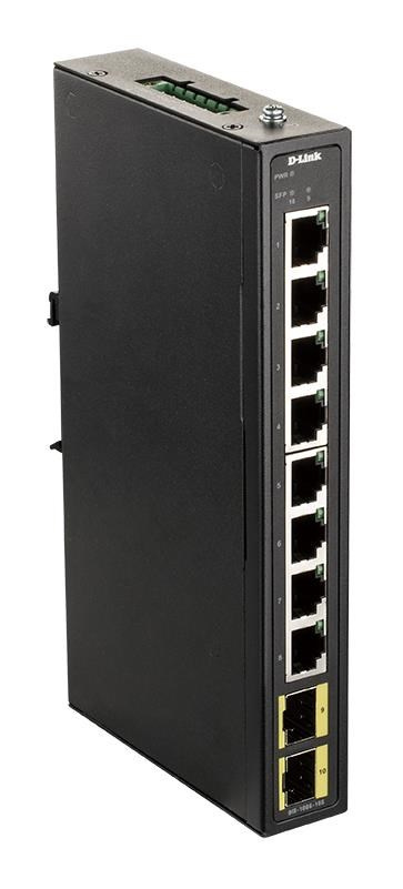 Popis D-Link DIS-100G-10S Průmyslový Gigabit unmanaged switch, 8x GbE, 2x SFP, DIN