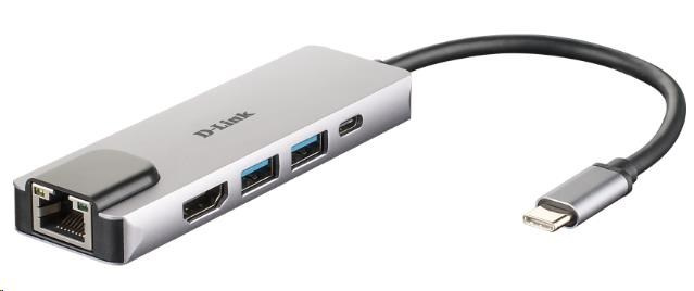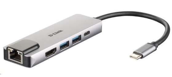 5-in-1 USB-C Hub with HDMI/Ethernet and Power Delivery - Two USB 3.0 SuperSpeed 5 Gbps ports - One USB 3.0 Type-C port with data sync and power delivery of up to 60 W (20 V @ 3 A) - Ultra HD video resolution up to 4K @ 30 Hz - Supports HDMI 1.4 and DisplayPort Alternate Mode over USB-C - HDCP 2.2 compatible - Backwards compatible with USB 2.0 and USB 1.1 devices - Achieve transfer speeds of up to 1 Gbps - Status LEDs for connection status and data transfer speed - Auto 10/100/1000 Mbps speed detection with auto-negotiation to always use the highest available speed - Simply plug it in and you’re ready to go - No additional hardware or software installation required - Strong aluminium alloy casing. D-Link Corporation, No. 289, Sin Sin Road, Jhonghe City, Taipei County 235, Taiwan (R.O.C.), Podpora: https://www.dlink.com/cz/cs/support