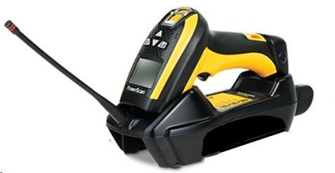 cordless scanner, 1D, linear imager, keypad (4 keys), zelená Spot, 3GL, display, multi-interface (RS232, KBW, USB), cordless, 433 MHz, IP65, incl.: cable (RS232, rovný, 1.8 m), power supply unit, power cable (EU), charging/transmitter cradle, removable baterie, colour: black, žlutá.