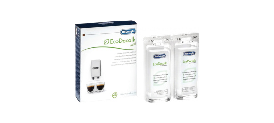 EcoDecalk je nový odvápňovací prostředek De'Longhi. Jeho složení je navrženo tak, aby byl 100% ekologicky nezávadný a zároveň ještě účinnější v boji proti vodnímu kameni uvnitř kávovarů než klasické odvápňovače.