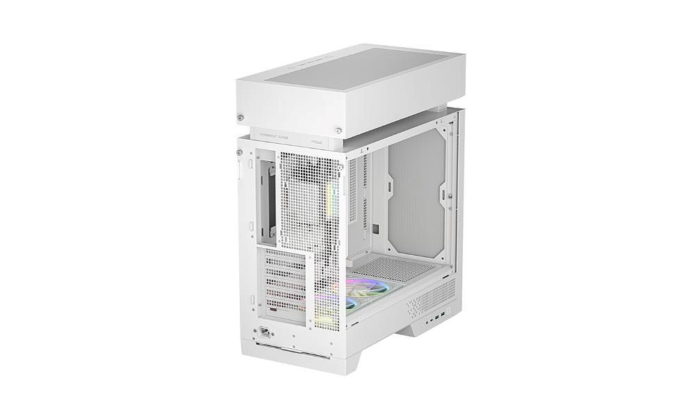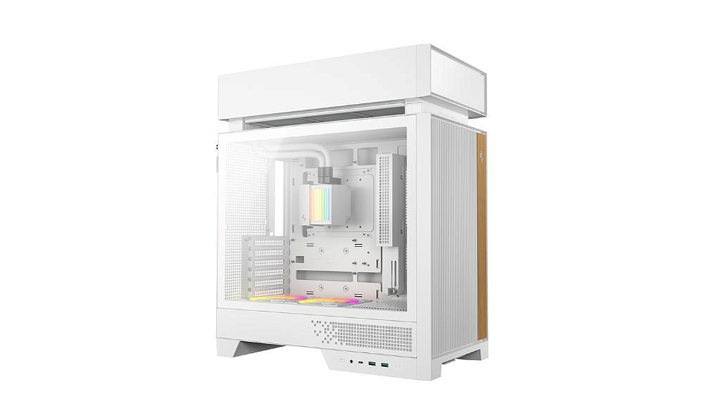 CL6600 WH přináší nový pohled na design skříní pro éru kapalinového chlazení. Fyzickým oddělením tepelných zón a cest proudění vzduchu zabraňuje hromadění tepla a vzájemnému rušení, kterému se u konvenčních uspořádání nelze vyhnout. Je také vybaven pokročilým 360mm kapalinovým chladičem a dvěma spodními ventilátory ARGB, které zajišťují vysoký výkon a vytvářejí živý interiér.