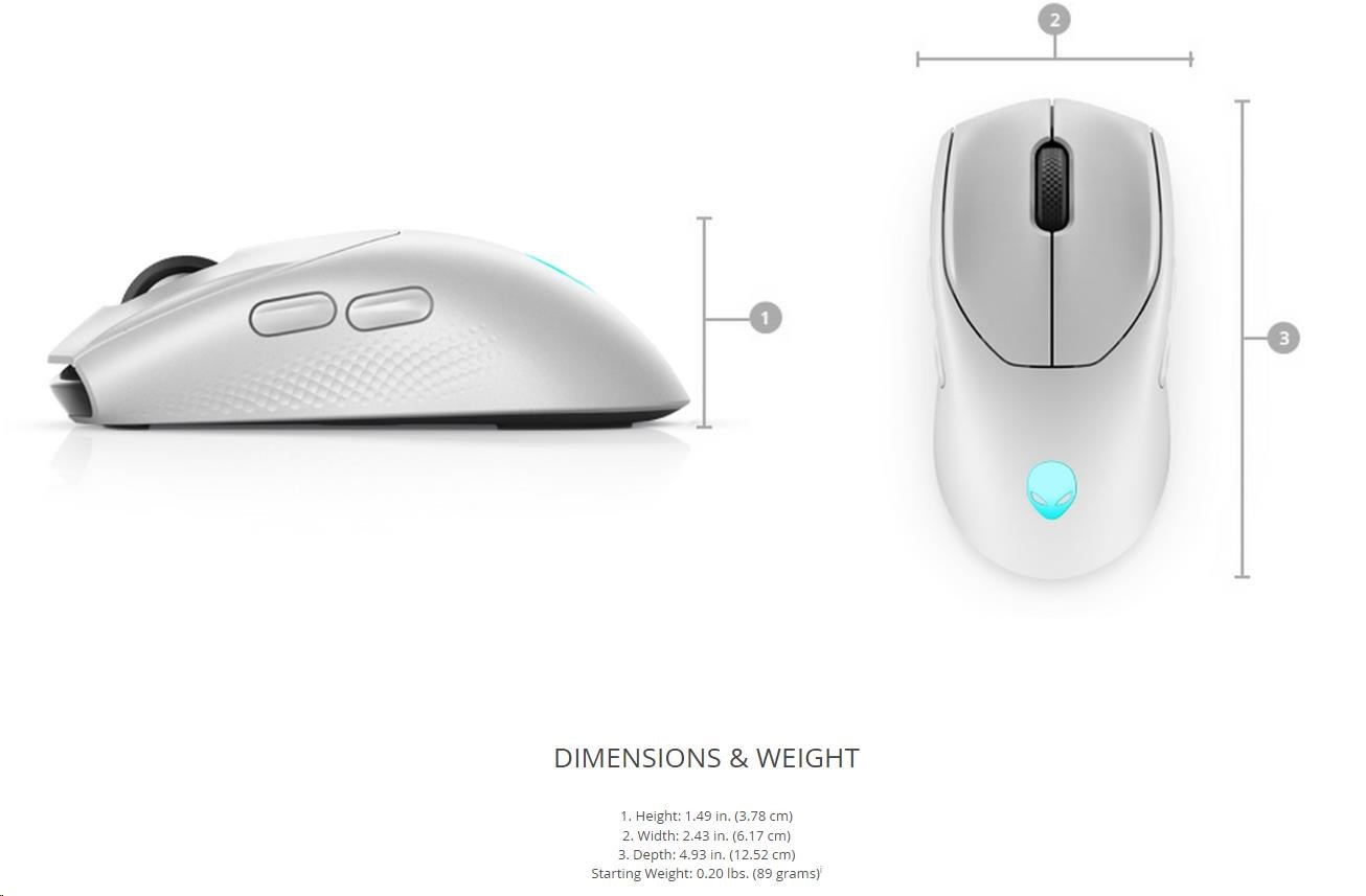 DELL Alienware Tri-Mode Wireless Gaming Mouse AW720M (Lunar Light)