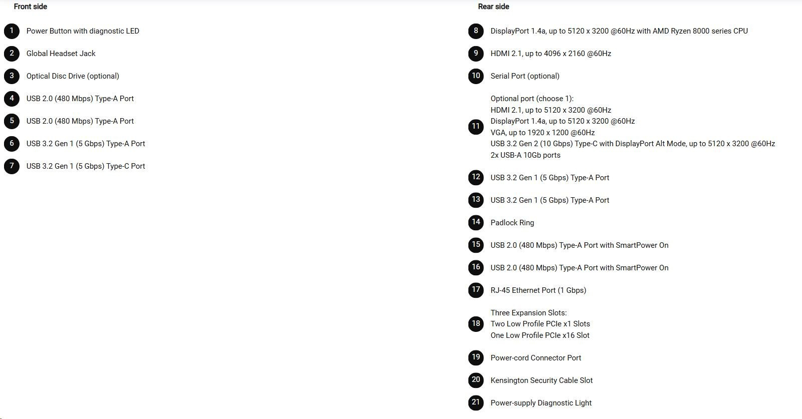 Rear side - DisplayPort 1.4a, up to 5120 x 3200 @60Hz with AMD Ryzen 8000 series CPU