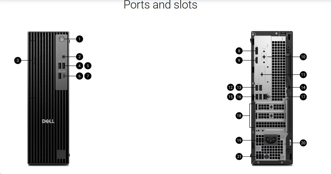 HDMI 2.1, up to 5120 x 3200 @60Hz DisplayPort 1.4a, up to 5120 x 3200 @60Hz VGA, up to 1920 x 1200 @60Hz USB 3.2 Gen 2 (10 Gbps) Type-C with DisplayPort Alt Mode, up to 5120 x 3200 @60Hz 2x USB-A 10Gb ports - USB 3.2 Gen 1 (5 Gbps) Type-A Port