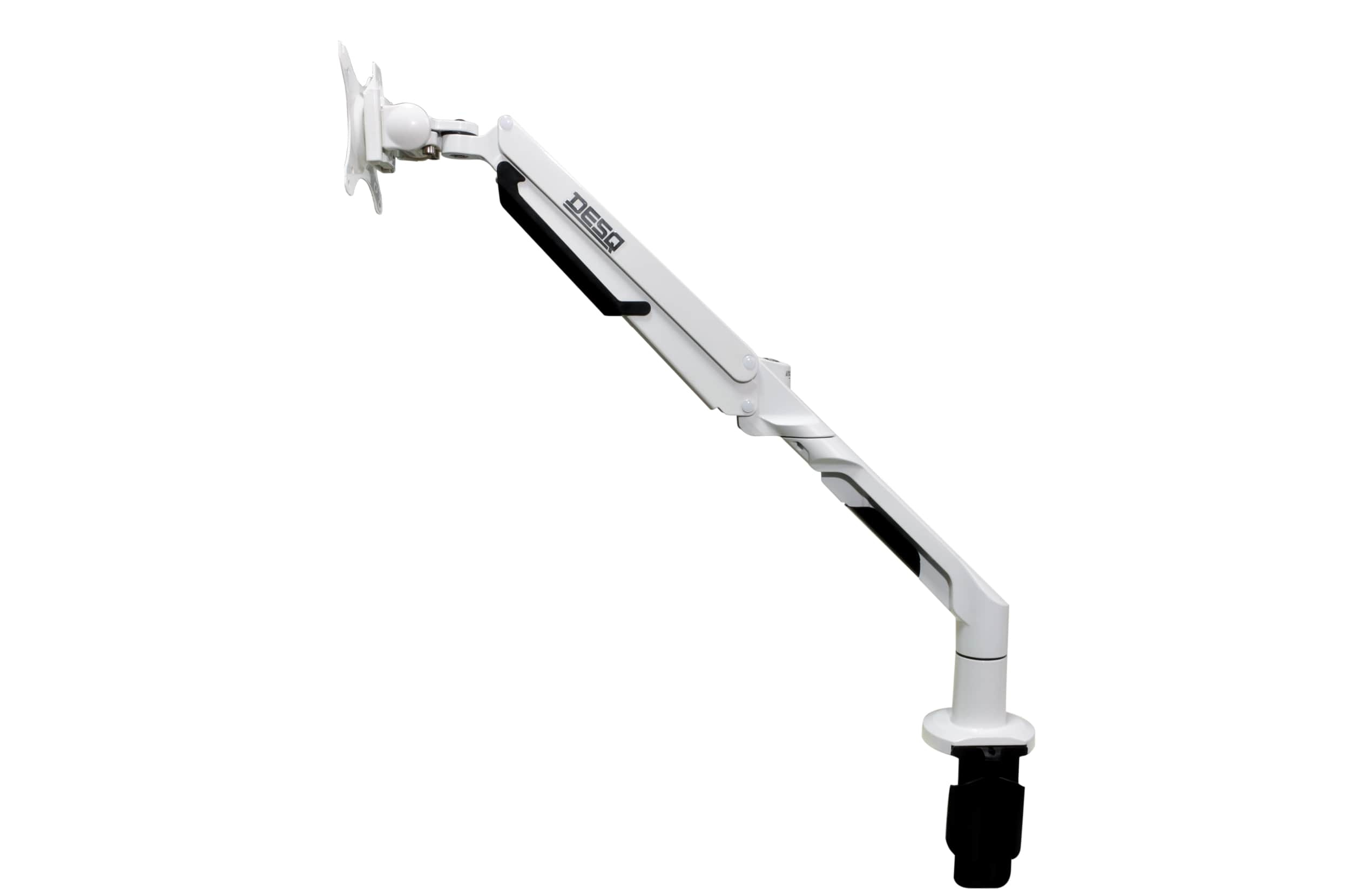 Vylepšete svou domácí kancelář nebo pracovní prostor s DESQ monitorovým ramenem s plynovou pružinou, které umožňuje snadné nastavení výšky, vzdálenosti a úhlu monitoru. Díky extra dlouhému dosahu 62 cm je ideální pro větší pracovní plochy nebo pro uživatele, kteří potřebují flexibilitu v umístění svého monitoru. Bílá barva. ? Plynová pružina pro snadné a přesné nastavení výšky jedním dotykem ? Kompatibilní s monitory od 17” do 36” (VESA 75x75 mm a 100x100 mm) ? Nosnost od 3 kg do 12 kg ? Montáž pomocí C-Clamp + Desk-thru pro flexibilní a bezpečné uchycení ? Rychloupínací VESA deska pro jednoduchou a rychlou instalaci monitoru ? Integrovaný systém pro správu kabelů udržuje váš pracovní prostor přehledný ? Možnost snadné rotace mezi režimem na výšku a na šířku S DESQ monitorovým ramenem snadno nastavíte výšku, vzdálenost a úhel obrazovky tak, aby byla v ergonomicky ideální poloze, čímž se snižuje namáhání krku, zad a očí. Zvednutím monitoru z pracovní plochy uvolníte cenné místo na stole a vytvoříte efektivnější pracovní prostředí.. , ,
