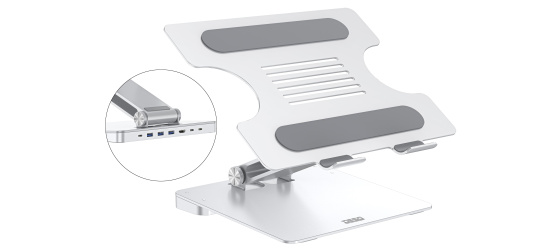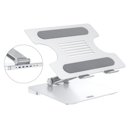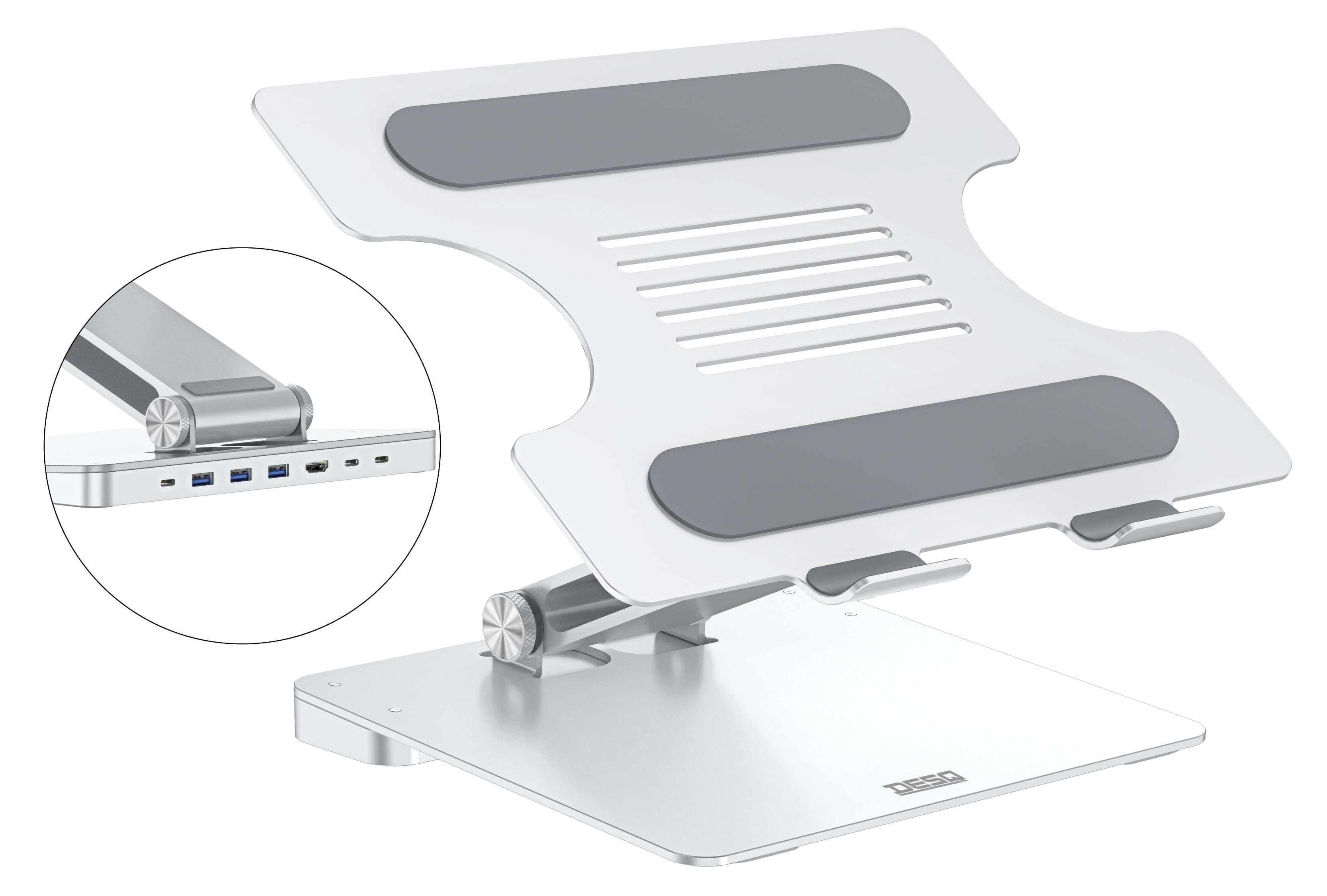 Proměňte svůj notebook v výkonnou desktopovou pracovní stanici s DESQ Notebook Dockem. Stačí připojit USB-C kabel a získáte přístup k externím monitorům, klávesnicím, myším a dalším periferiím. Stojan je kompatibilní s MacBooky, notebooky s USB Type-C, tablety a mobilními telefony. ? Promění váš notebook v desktop PC s plynulou integrací přes USB-C ? Plně nastavitelný pro ergonomickou výšku a úhly ? Zvedá obrazovku až o 28 cm pro lepší komfort při sledování ? Platforma nastavitelná až do úhlu 70 ° pro dokonalou polohu obrazovky ? Lehká konstrukce a skládací design pro snadné přenášení ? Výřezy v konstrukci podporují proudění vzduchu a udržují notebook v chladu ? Pevná a odolná hliníková slitina pro dlouhou životnost ? Silikonové podložky a nožky pro stabilitu a ochranu proti skluzu S DESQ stojanem na notebook nastavíte obrazovku do ideální výšky, což podporuje zdravé a ergonomické držení těla a pomáhá předcházet bolesti zad, krku a únavě očí.. , ,