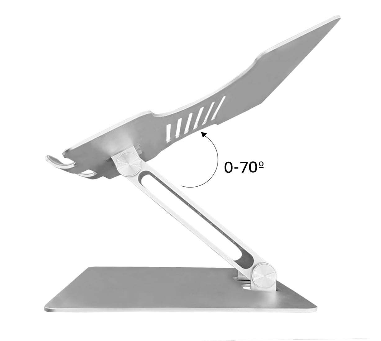 Plně nastavitelný stojan na notebook umožňuje nastavit váš notebook do jakékoliv výšky a úhlu pro ergonomicky správné držení těla. Celý je vyroben z vysoce kvalitní hliníkové slitiny a navržen v moderním minimalistickém designu. ? Plně a snadno nastavitelný podle vašich potřeb ? Zvedá obrazovku až o 28 cm pro optimální výšku ? Platforma nastavitelná až do úhlu 70 ° pro ideální pozorovací úhel ? Lehká konstrukce a skládací design pro snadné přenášení ? Výřezy v konstrukci pro lepší proudění vzduchu a chlazení notebooku ? Pevná a odolná hliníková slitina ? Silikonové podložky a nožky pro stabilitu a ochranu povrchu stolu S DESQ stojanem na notebook nastavíte displej do ideální výšky, což podporuje zdravé a ergonomické držení těla a pomáhá předcházet bolestem zad, krku a únavě očí.. , ,