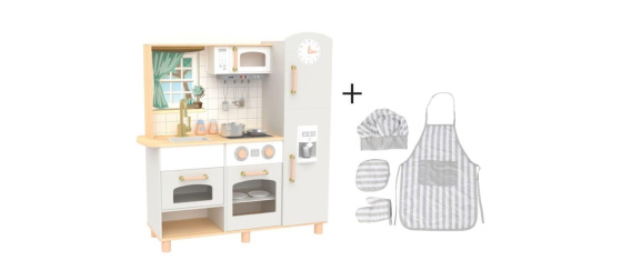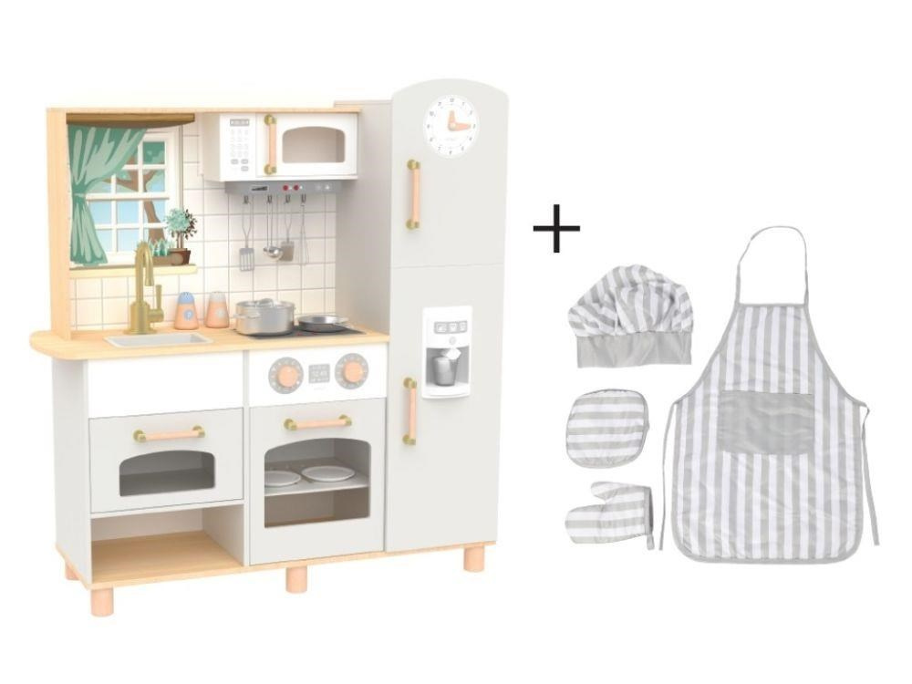 Dětská dřevěná kuchyňka Premium s rozšířeným příslušenstvím + textilní set ZDARMA