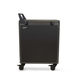 The trolley makes it possible to charge 20 tablets or ultrabooks at once, so you remain flexible at all times and don't have to worry about there being no sockets. An adjustable divider allows for the device module to be adapted to notebooks measuring up to 21 x 254 x 380 mm (16 inches) in size. The devices are placed between ABS panels and each given their own place. All power is supplied completely on a removable mounting plate which has its own internal power distribution, is mutually compatible with the GST18 connector, and features a C14 power entry module with an integrated switch and automatically resettable fuse. To protect the devices from overheating, the trolley features a powerful yet quiet fan. Maximum protection is provided by the rugged aluminium and con-pearl construction with built-in lock, the sliding handle, and four high-quality castors for convenient transport. Small items such as power cords can be stored in the pocket on the lid. The charging case comes equipped with country-specific connector strips (internal power distribution, mutually compatible with GST18).