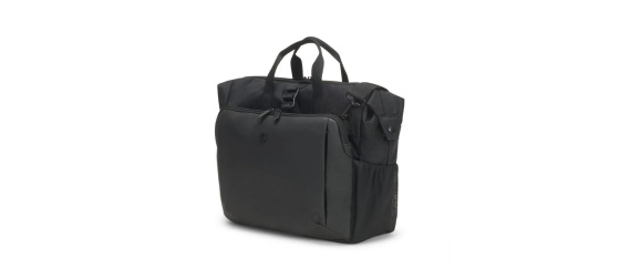 Characteristics • Made of 28 recycled PET bottles • Padded notebook compartment with fitall system • Slip pocket for tablets up to 12.9" • Spacious main section with compartments for documents and accessories • Front pocket with storage space for mobile accessories • Open expandable compartment for active gear • Mesh pocket for water bottle or umbrella inside the bag • Document compartment on the back