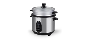 Rýžovar, objem 0,6l, pařáček pro vaření v páře, příkon 300W, funkce Keep Warm, LED kontrolky, prémiový matný černý povrch, univerzální využití, automatický provoz, automatické vypnutí, víko z tvrzeného skla s ventilem.
