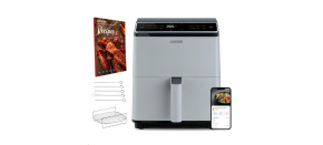 Cosori Dual Blaze TwinFry je chytrá horkovzdušná fritéza s objemem 10 litrů, ideální pro velké rodiny. Díky 4 topným tělesům (2800 W) a duálnímu ohřevu nevyžaduje předehřev ani protřepávání. Nabízí rozdělení koše na 2x 5l, funkci Sync, 6 programů, max. 240 °C pro grilování a ovládání přes aplikaci
