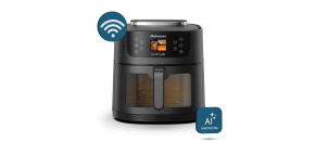Horkovzdušná fritéza, objem nádoby 4l, průhledné okénko pro vizuální kontrolu pokrmu, osvětlení interiéru, příkon 1 600W, 8 programů vč. manuálního nastavení a předehřátí, digitální displej, vnitřní tác vhodný do myčky, 360° cirkulace horkého vzduchu, nastavitelná teplota: 120° - 200°, nastavení času 1 – 50 min.