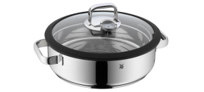 Vysoká pánev WMF Profi Resist Ø 28 cm s nepřilnavým povrchem PermaDur, vhodná pro všechny typy varných desek včetně indukce. Odolná konstrukce z nerezové oceli 18/10, hliníku a chromové oceli.