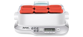 Tefal YG660 Jogurtovač je výkonný jogurtovač s 600 W, který využívá parní technologii pro přípravu optimálního jogurtu za pouhé 4 hodiny. Součástí balení je 6 skleněných nádob po 140 ml s víčkem a sítkem, a také praktický podnos s uchy pro snadné uložení a přepravu v chladničce. Díky systému odkapávání a časovači umožňuje jogurtovač i přípravu lahodných dezertů. Nádoby jsou vhodné do myčky a 100% bez BPA.