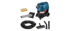 Velmi výkonný a energeticky úsporný mokro-suchý vysavač s 20l plastovou nádobou, zásuvkou pro práci s elektrickým nářadím, 5m kabelem, 2,2m sací hadicí a funkcí foukání..