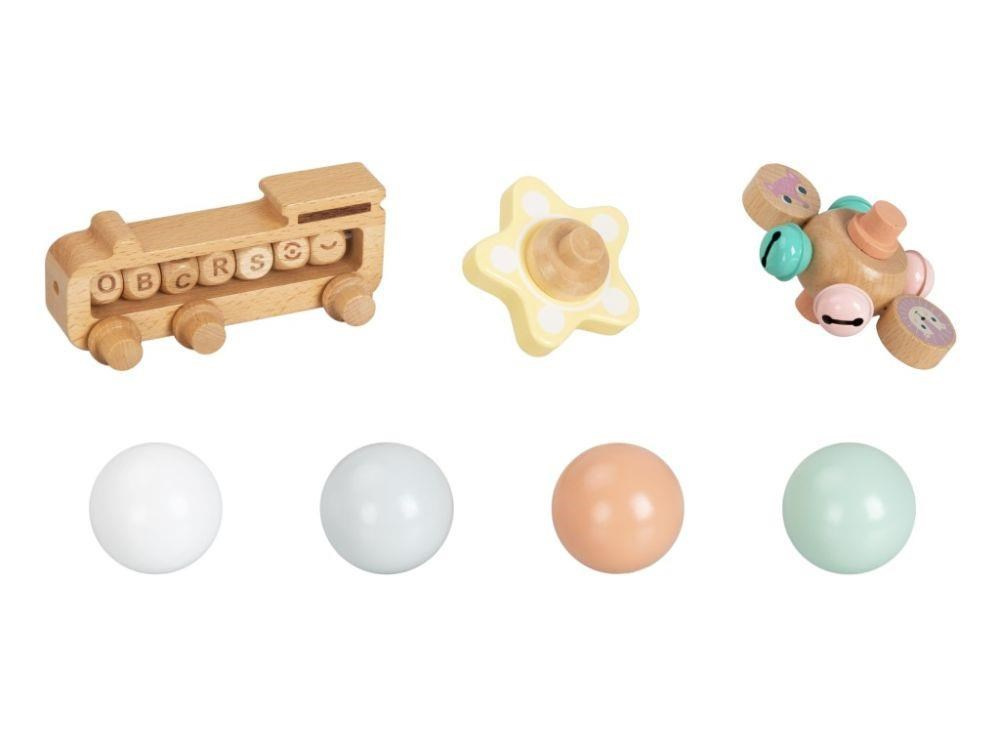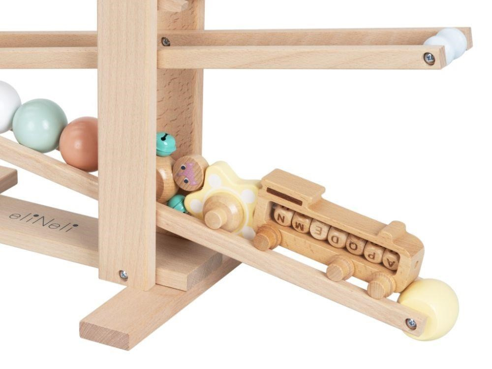 Již smontovaná dřevěná kuličková dráha XL, z tvrdého přírodního dřeva, s 6 dřevěnými zábavnými prvky a s parádním vláčkem ZDARMA je zábavnou hračkou pro děti i celou rodinu. Stačí správně umístit jeden z dřevěných doplňků (kuličku, kytičku, kolečko s rolničkami, vláček) do horního patra a sledovat co se bude dít. Hra s kuličkovou dráhou zdokonaluje dovednosti, učí děti soustředit se a trpělivosti, některé prvky stimulují smysly a naučí děti písmenka. Kuličkovou dráhu nemusíte skládat, je již smontovaná.. NoName není konkrétní značka nebo výrobce, ale spíše označení pro generické produkty, které nejsou spojeny s konkrétní známou značkou. Dodavatel: eD system a.s., Novoveská 1262/95, 709 00 Ostrava - Mariánské Hory, CZ