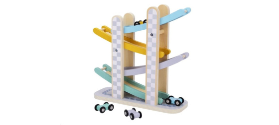 Dřevěná závodní dráha, autodráha se 4 autíčky, probudí duši závodníka v každém dítku. Uspořádání závodů se závodními auty přímo v dětském pokoji je zábavnou hrou pro celou rodinu. Z autíček v krásných pastelových barvách si vybere každý svého favorita. Rozhodující při této hře je správná koordinace, přesnost, chvíle soustředění, zkrátka správně umístit závodničku na nejvyšší patro závodní dráhy.
