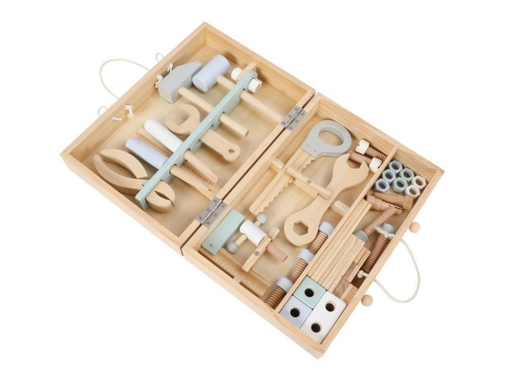 Dřevěné nářadí krásně a přehledně uložené v praktickém dřevěném kufříku nadchne každého malé kutila. Uvnitř kufříku najdou děti nejdůležitější nástroje včetně šroubů, matek a dalších doplňků. Kufřík s poutkem a členěným vnitřním prostorem usnadní dětem úklid i přenášení oblíbené hračky, děti tak mohou mít svou opravářskou a kutilskou sadu stále s sebou, na dovolené, na víkend k babičce.. NoName není konkrétní značka nebo výrobce, ale spíše označení pro generické produkty, které nejsou spojeny s konkrétní známou značkou. Dodavatel: eD system a.s., Novoveská 1262/95, 709 00 Ostrava - Mariánské Hory, CZ